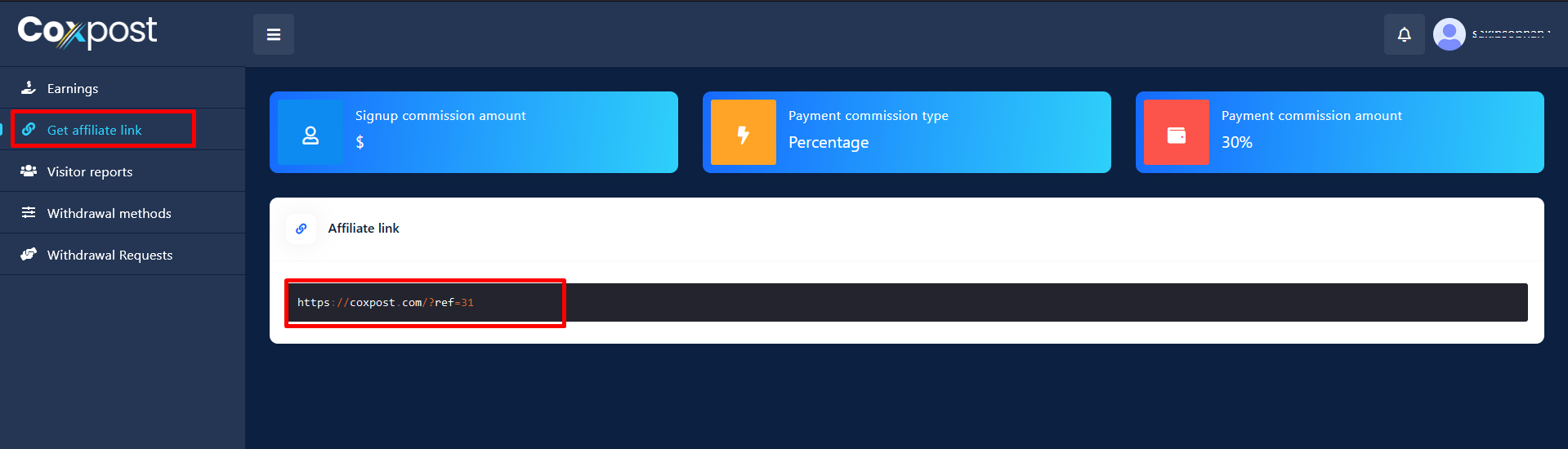 To Signup/Login at CoxPost Affiliate, Please go to: https://coxpost.com/affiliate_system