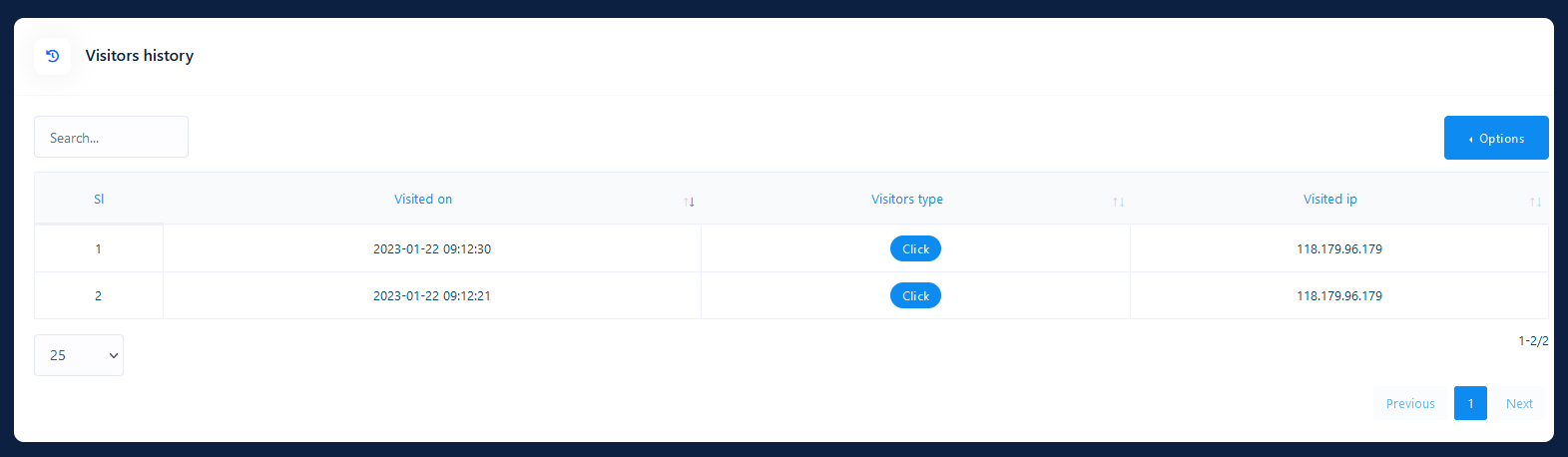 Beside analytics, you can also see the visitor details by click on the Visitor History button. You can see the lists of the visitors of your promoted link.