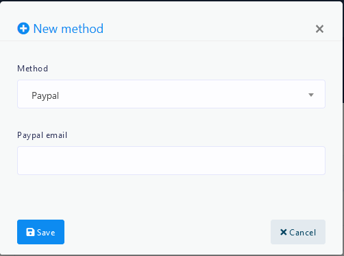 - PayPal: You can add PayPal method with valid paypal email by selecting PayPal from the dropdown list.