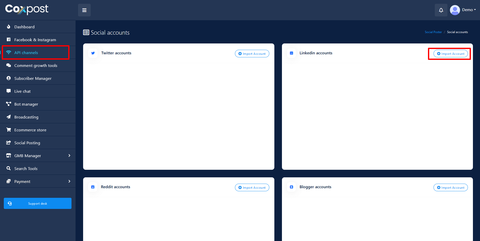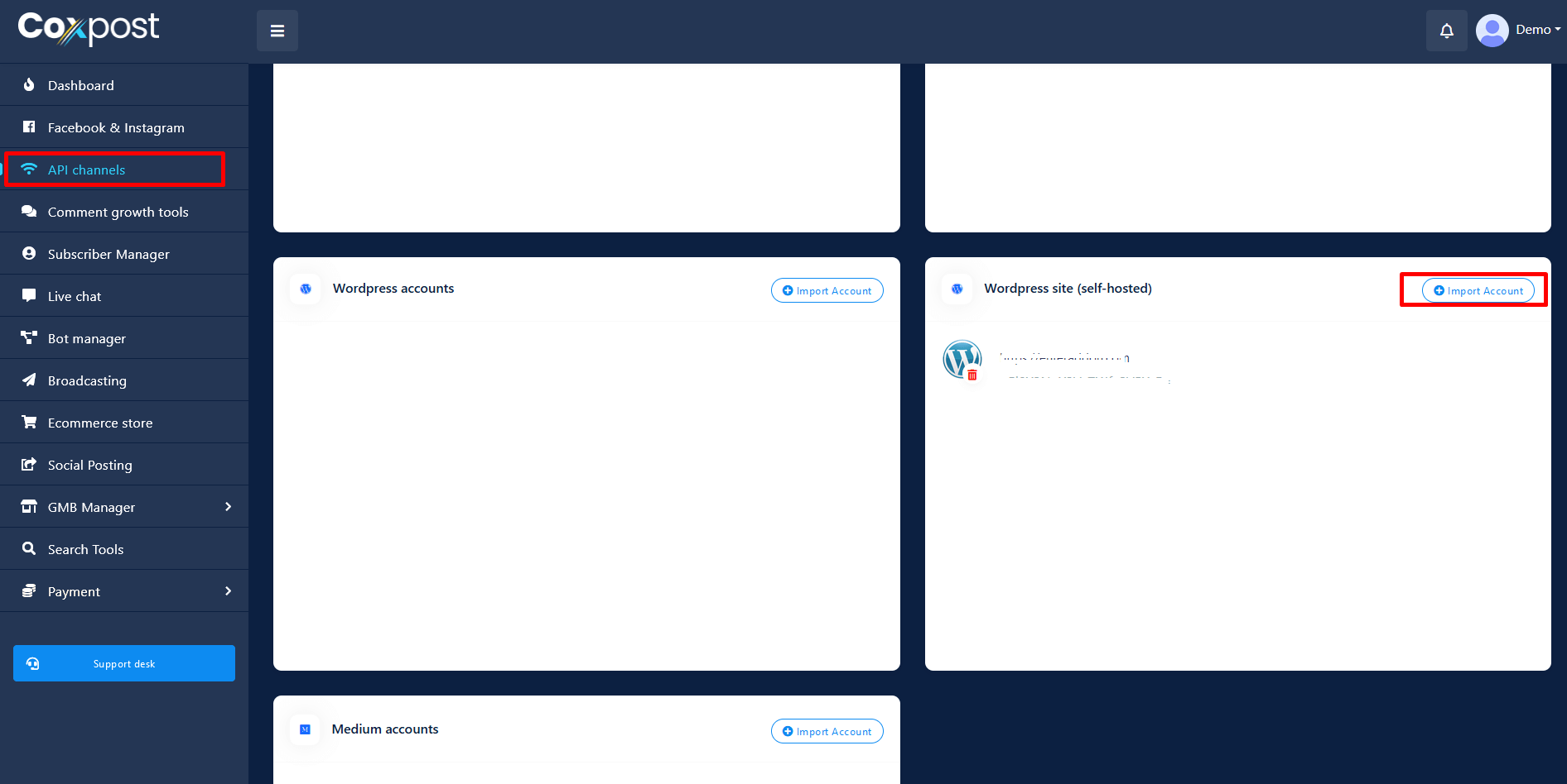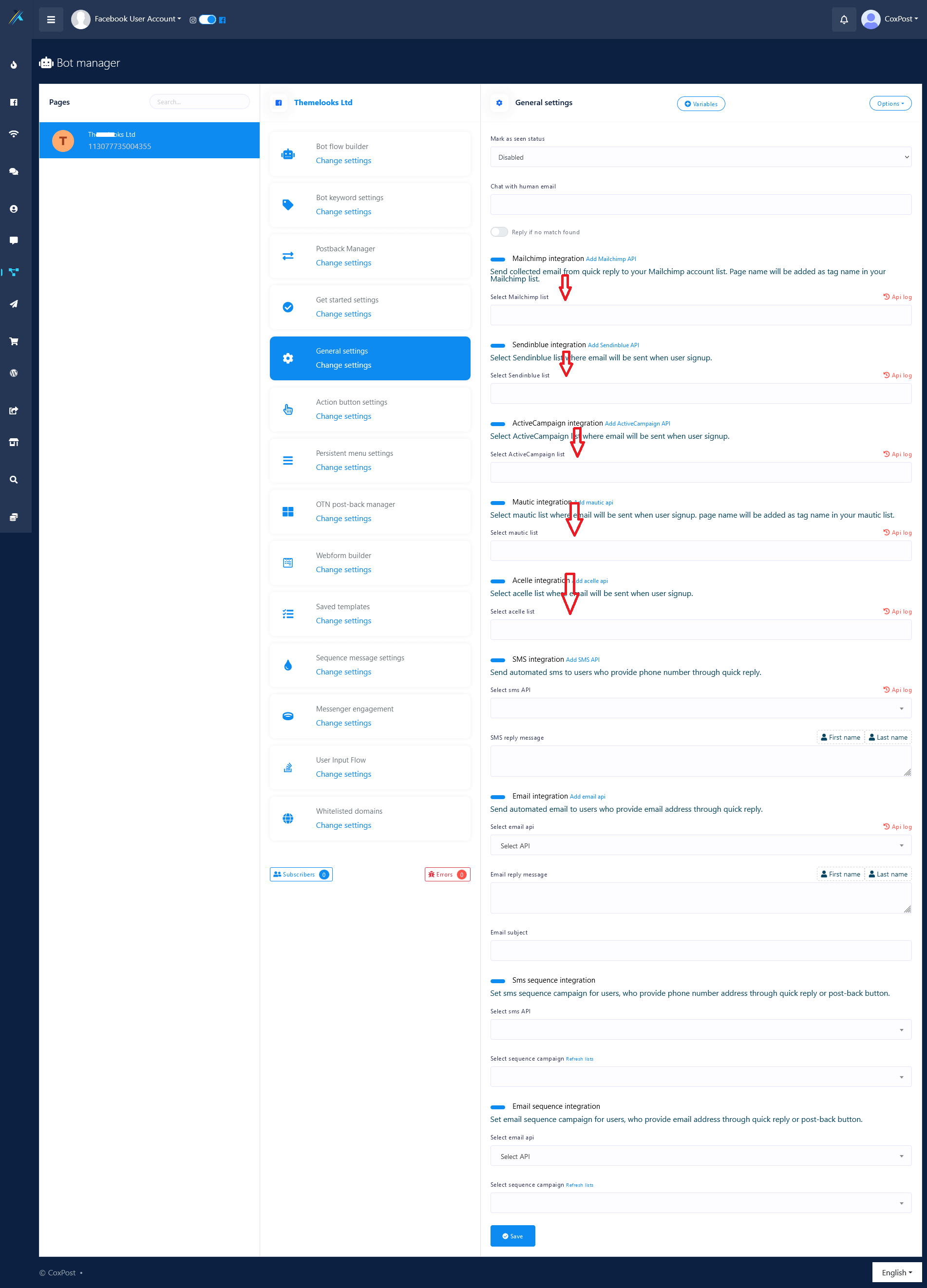 You can now integrate MailChimp into coxpost. From now with this feature all the emails collected from messenger Quick Reply or user’s sign up will automatically added to your desired MailChimp list.