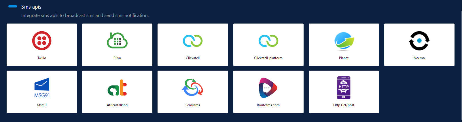 But as a solution we have implemented a system where you can add any HTTP GET Request API for sending SMS. you can use your preferable SMS gateway on coxpost which supports HTTP GET Request for message sending. Only thing you have to do is to create a custom SMS API using coxpost. Just follow below steps: