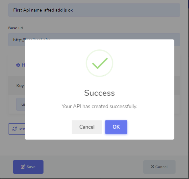 You can test your API by click on the test icon of the added API from the API lists to see if the API works correctly or returns any errors.