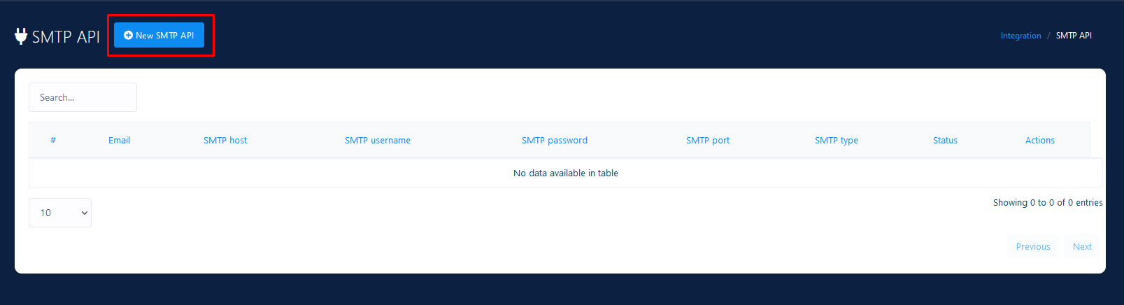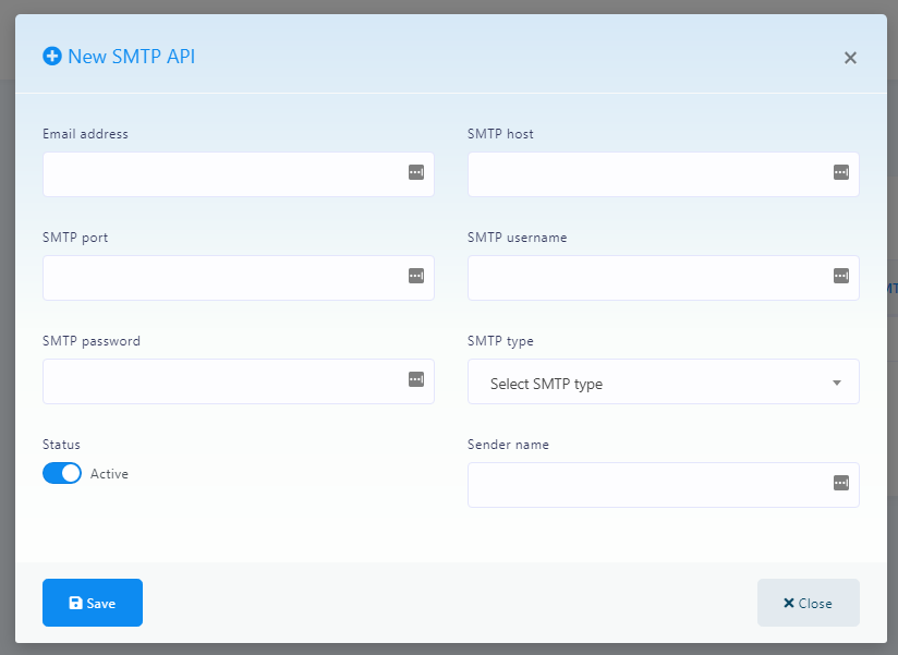 click on the New SMTP API, a modal for adding SMTP will be appear and you'll need the following information to create a new one: