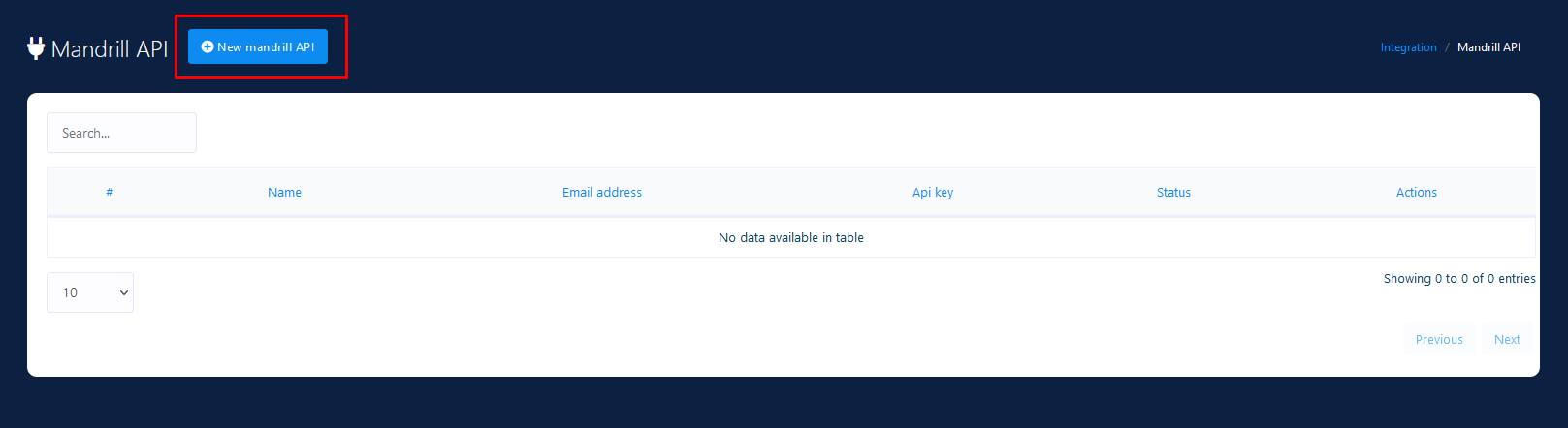 Click on New Mandrill API and a modal will appear to add sendgrid api. Fill up the form with necessary information and hit Save button.