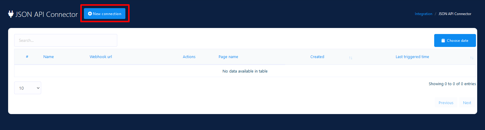 JSON API connector sends JSON data to any of your provided external URL. Once any specific event mentioned below is triggered, system will send json data to your provided webhook URL & it will wait for 10 second to get response. If system does not get response in 10 seconds, it will send another post request to your webhook. You can then process your data as you want. This feature can be used to connect our system with any third party app like Zapier or your own custom app. You will find JSON API connector features inside Messenger Bot menu.
