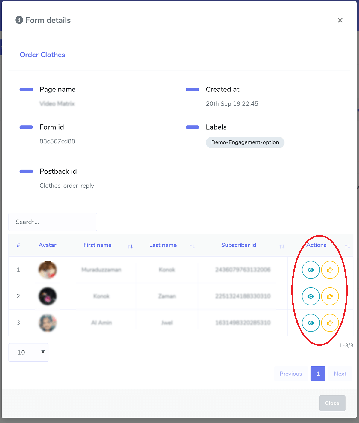 Click icon in webview manager and you can see your webview report grouped by subscriber and clicking the eye icon inside here will pop up the submitted form data in details.