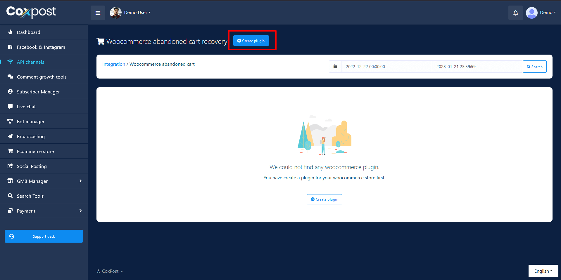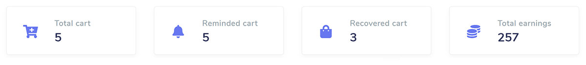 You can see the total cart created after the plugin has been installed on your WooCommerce store as well as the number of carts system has sent reminder, number of carts system was successful to recover and total earning using this plugin.