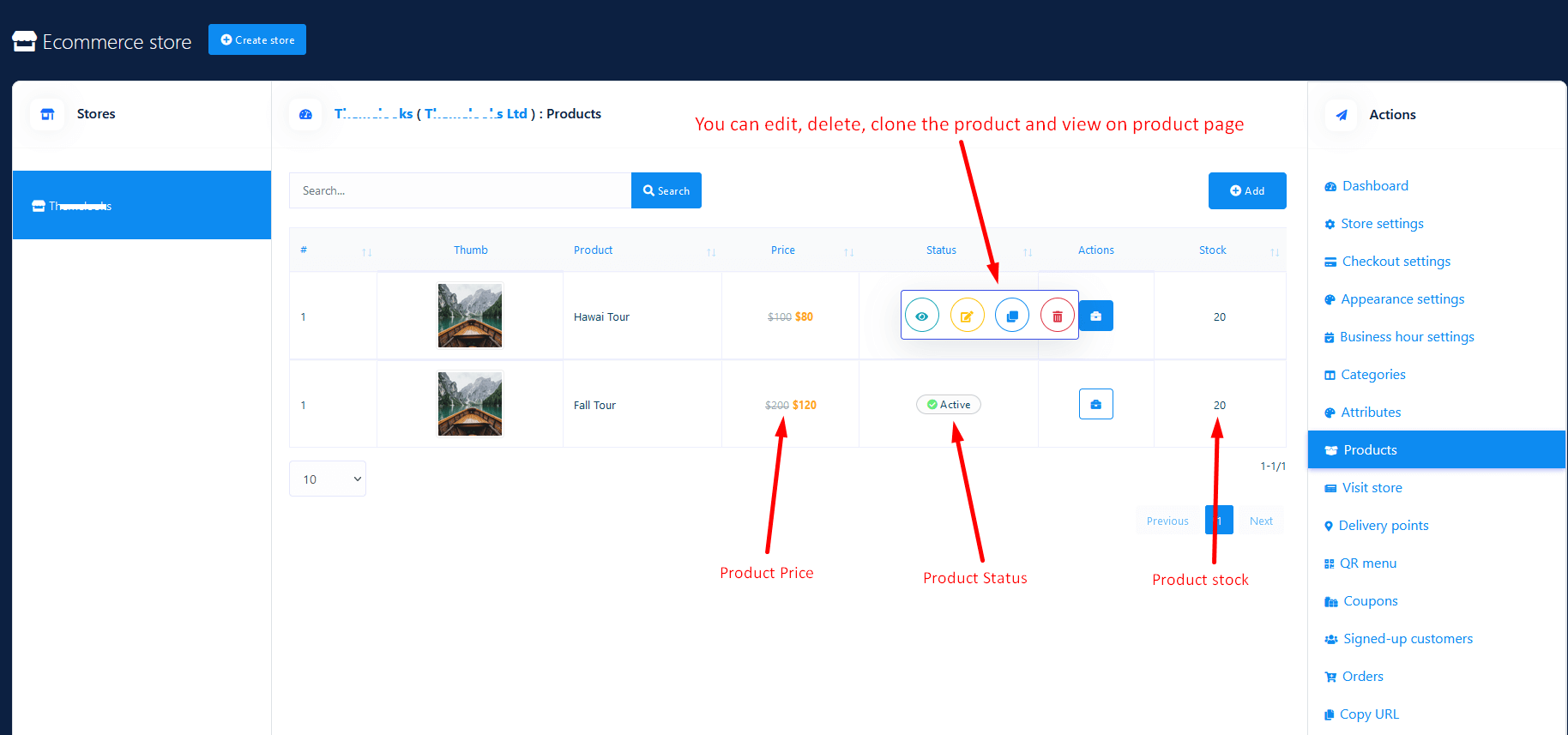 To check how your virtual restaurant is set, click on the ‘Visit store’ option in the ‘Action Menu’ and you will redirect to your virtual restaurant in a new tab.