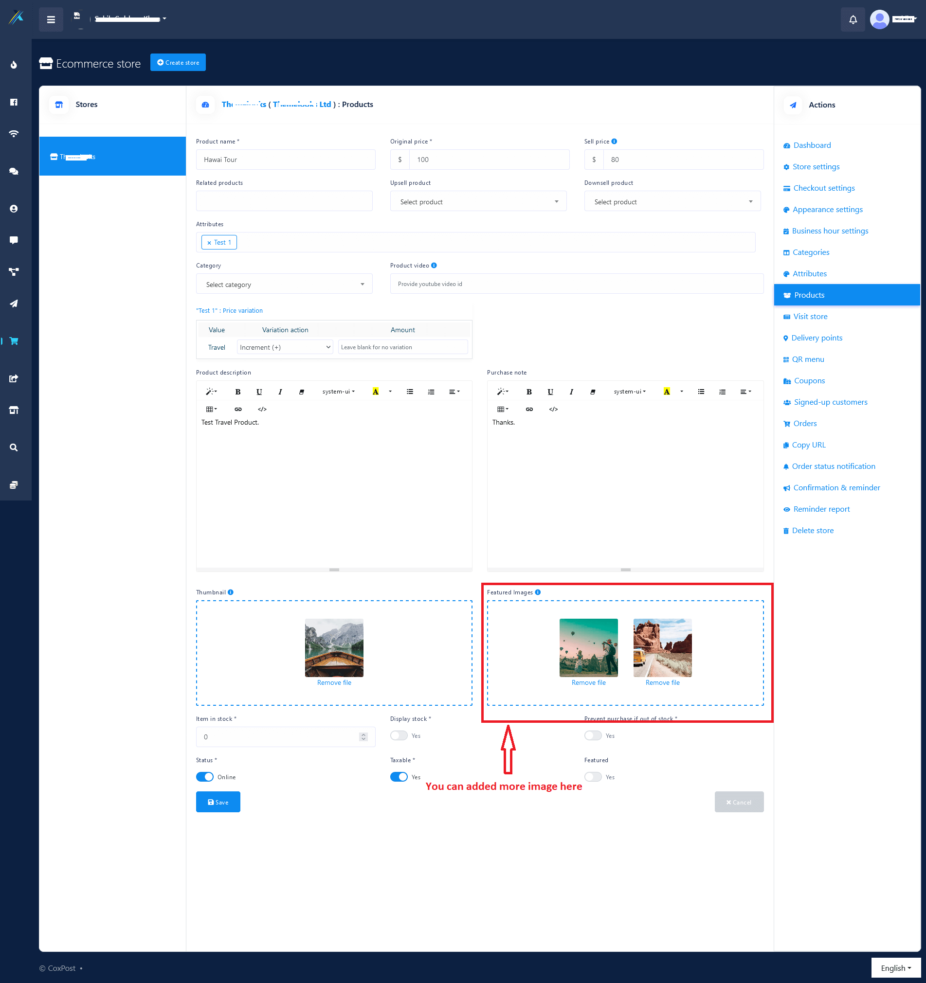 Your virtual restaurant created by CoxPost’s ‘E-commerce store’ can