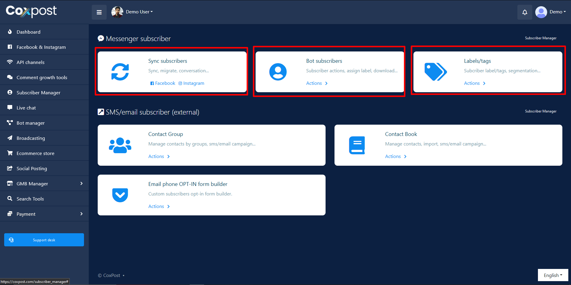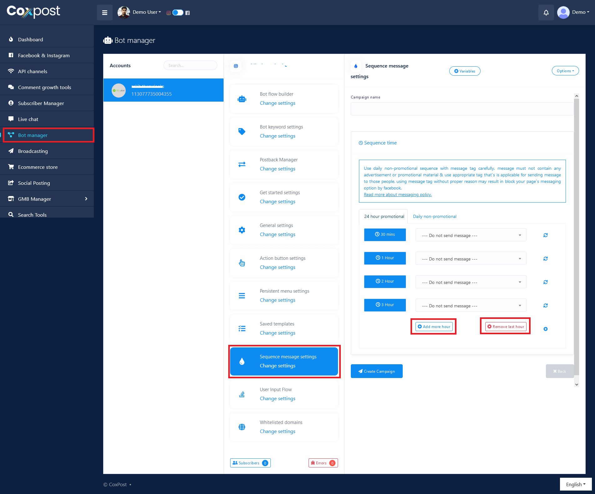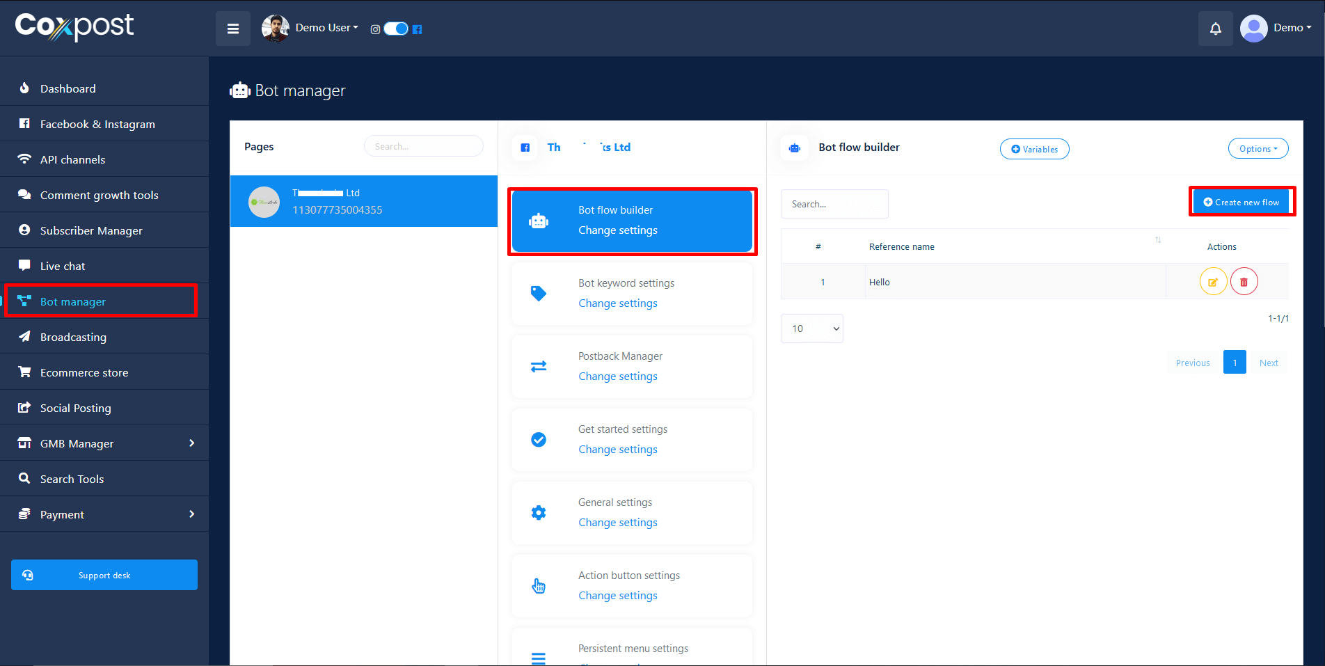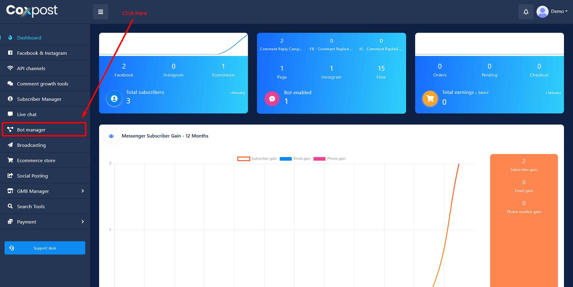 After that, go to the Dashboard of the CoxPost. Click on the Bot Manager option at the left sidebar.