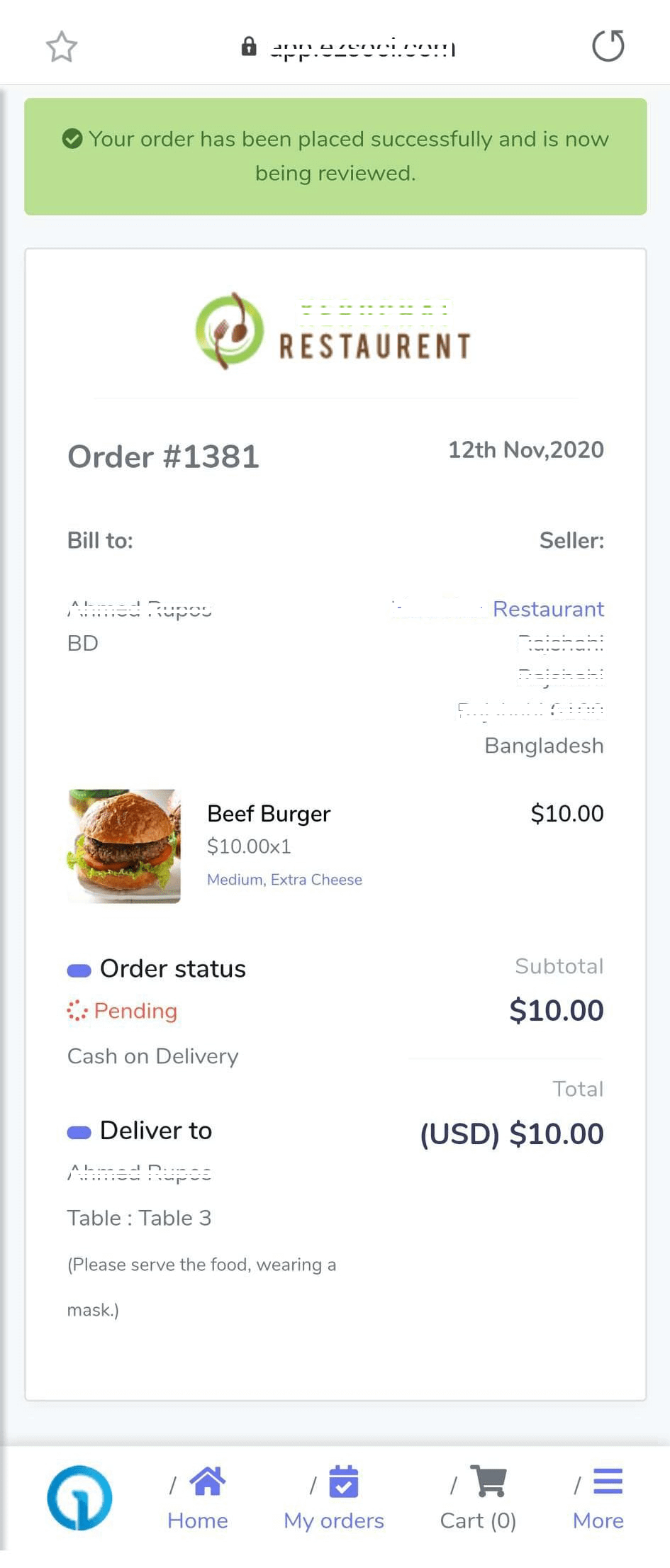 Well, just as they finish making payments, a page will appear with a confirmation message at the top of the page and order details on the middle of the page. That is, the order has been given to the restaurant.