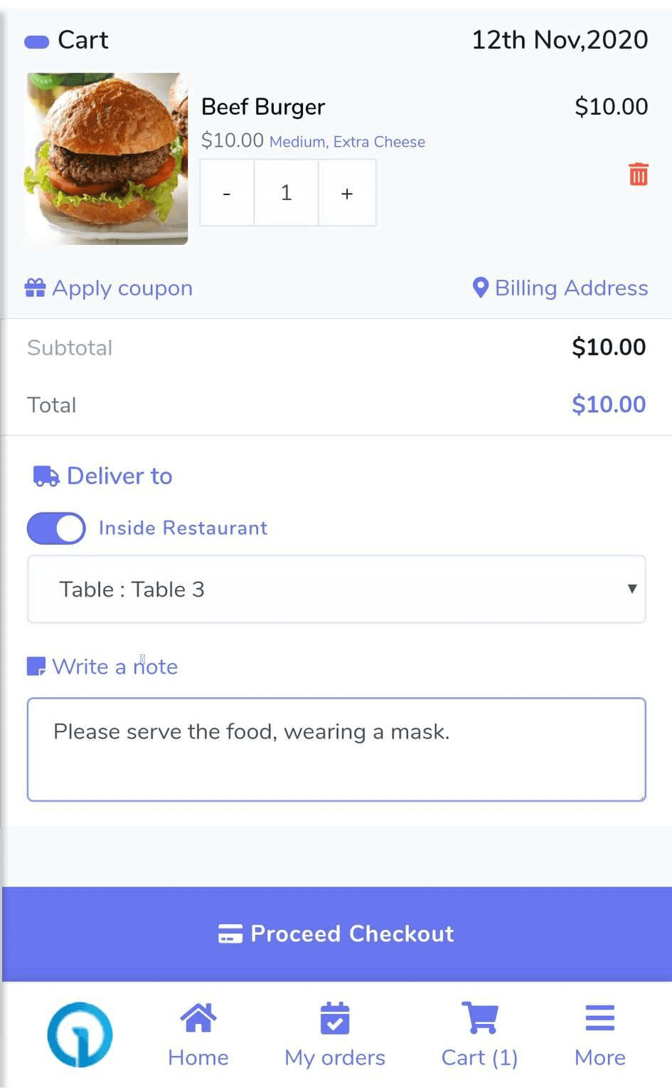 restaurant, they have to select the ‘In restaurant’ option. Then they