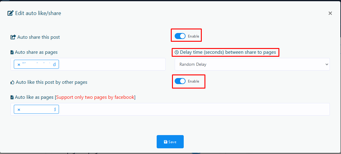 This feature can auto like any new post of your page as your other pages and also can auto share any new post of your page as your other pages. It's very simple, just select pages you want to hit like with and pages you want to share the new posts. Using enough share delay can be very useful for large number of share & avoid spamming.