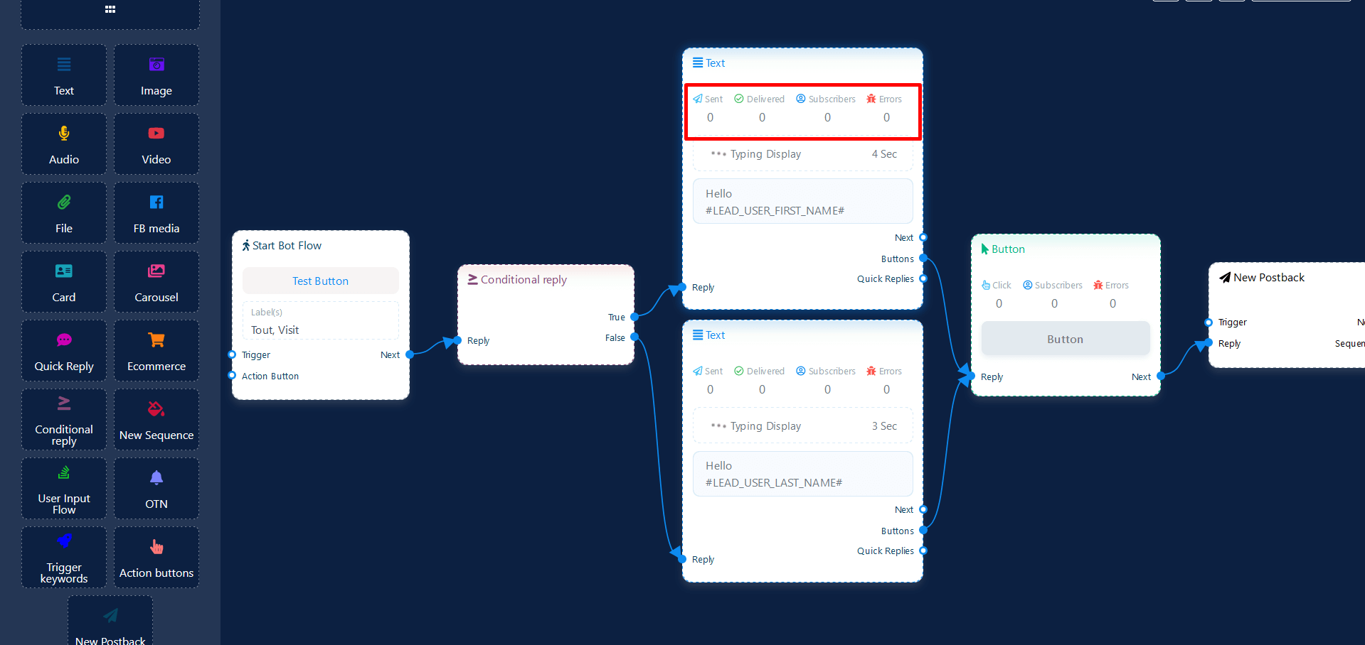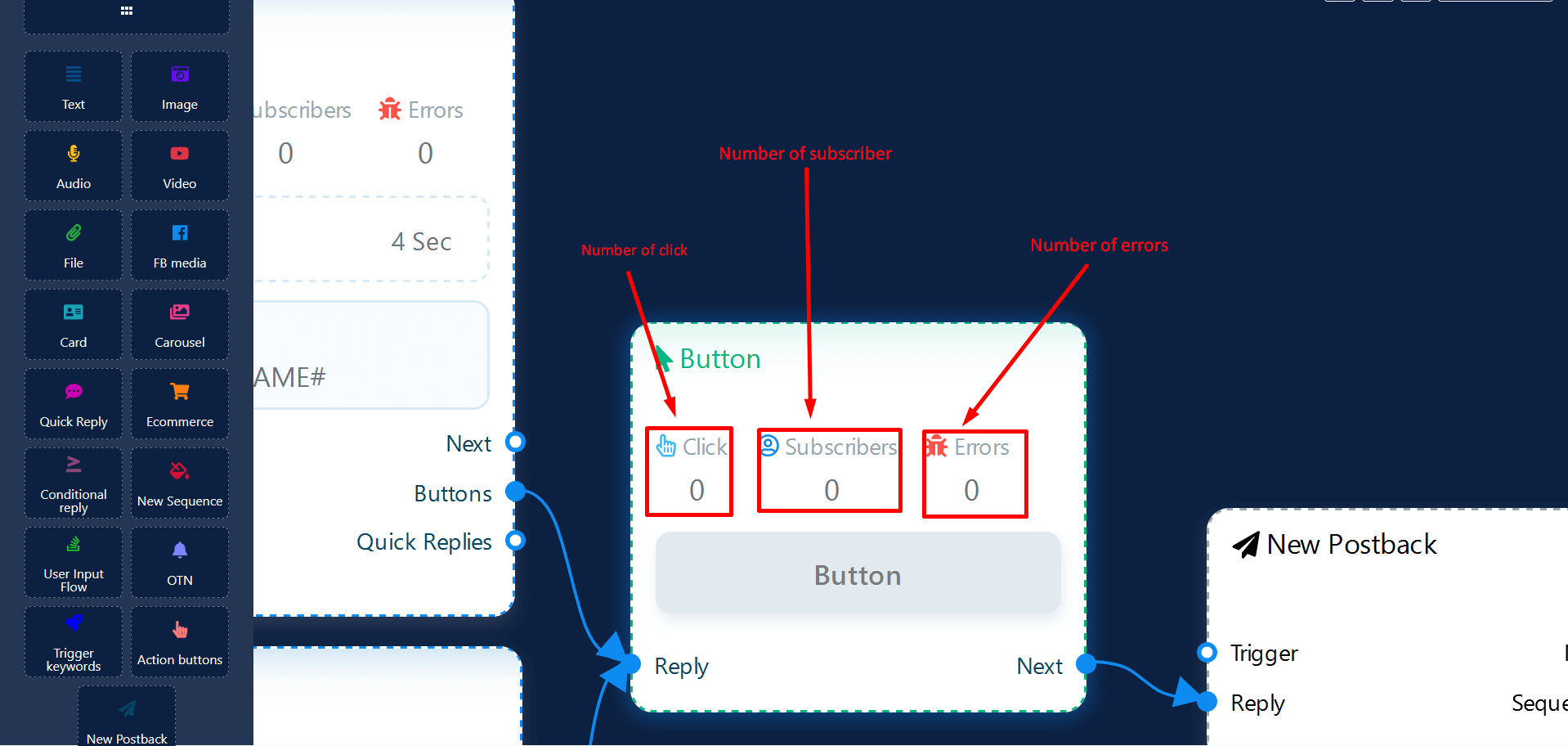 Also in the button components, you can see the number of clicks, number of subscribers, and also error if there is any.