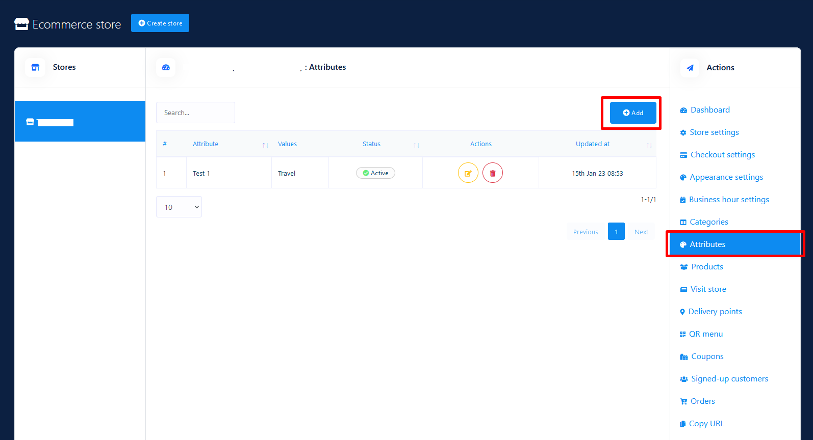 Then click on Attributes menu from right sided menus. Click on Add attribute button to create attributes with different attributes values.