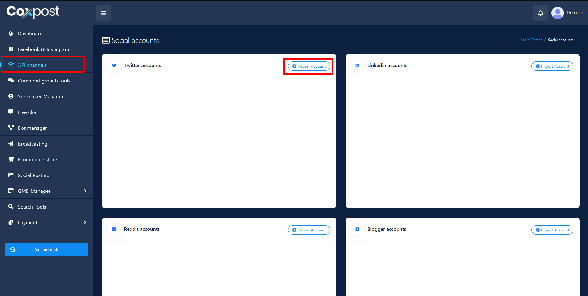 You can now integrate MailChimp into coxpost. From now with this feature all the emails collected from messenger Quick Reply or user’s sign up will automatically added to your desired MailChimp list.